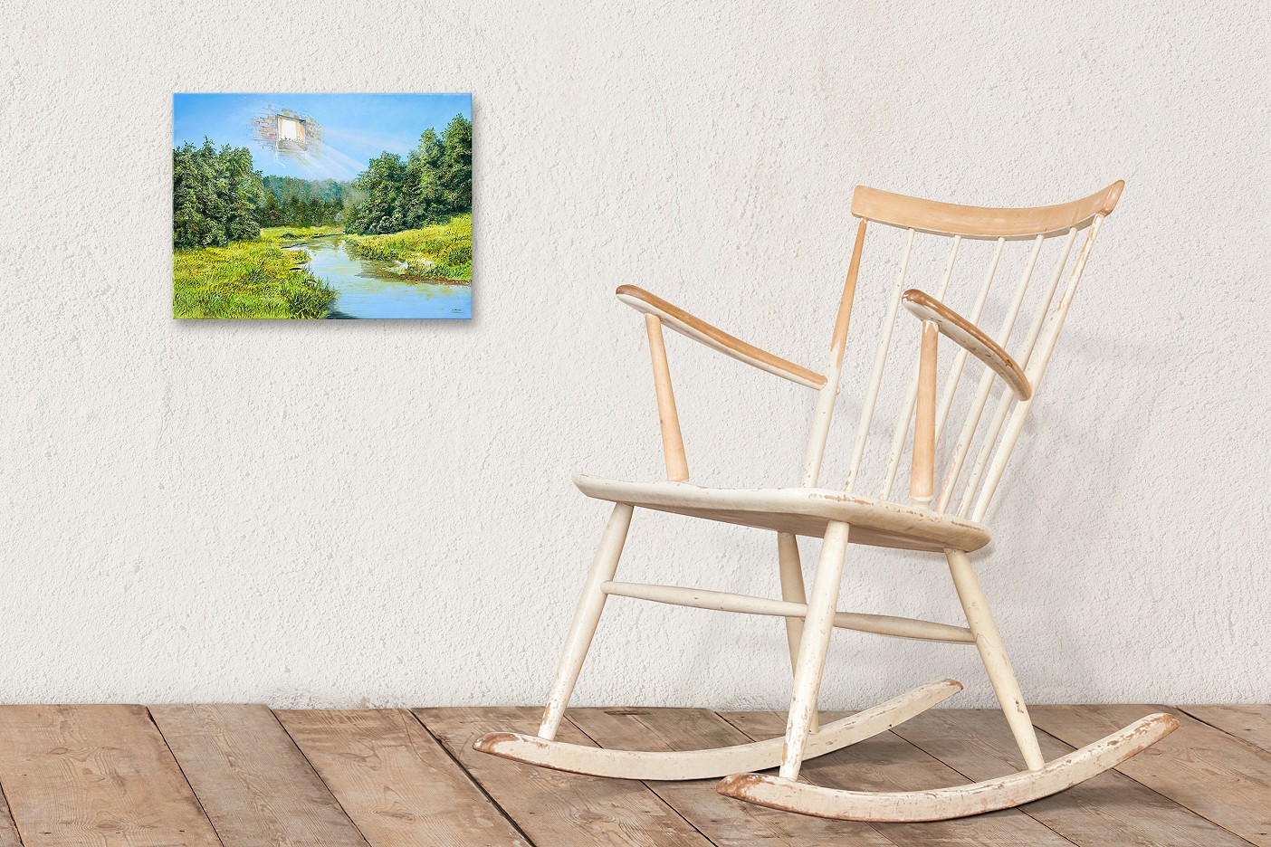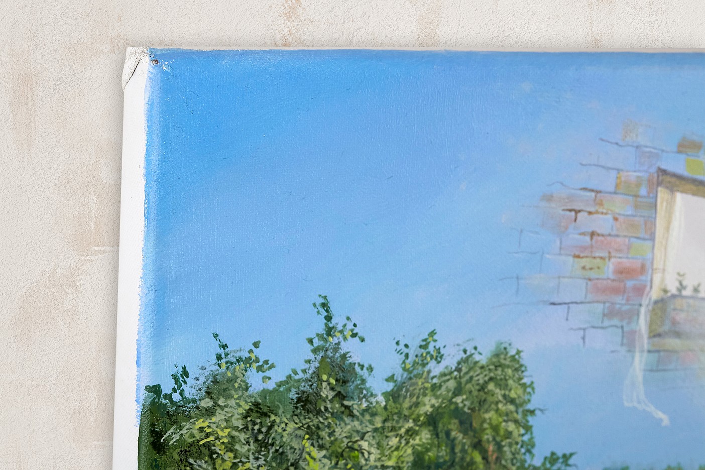 Das kleinformatige Ölgemälde zeigt die Wohnstätte des oder eines Himmelsmitbewohners auf eine fast märchenhafte Weise.