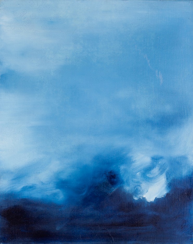 Dieses Bild gehört zu einer Serie von 4 Himmelbildern. Alle im gleichen Format und ebenfalls wie die meisten der Bilder von Antje Krohn auf alten Stoff gemalt. Dieser ist zusätzlich auf Leinwand montiert. in den Himmelbildern hat die Künstlerin verschiedene Himmelimpressionen auf die Leinwand gearbeitet.