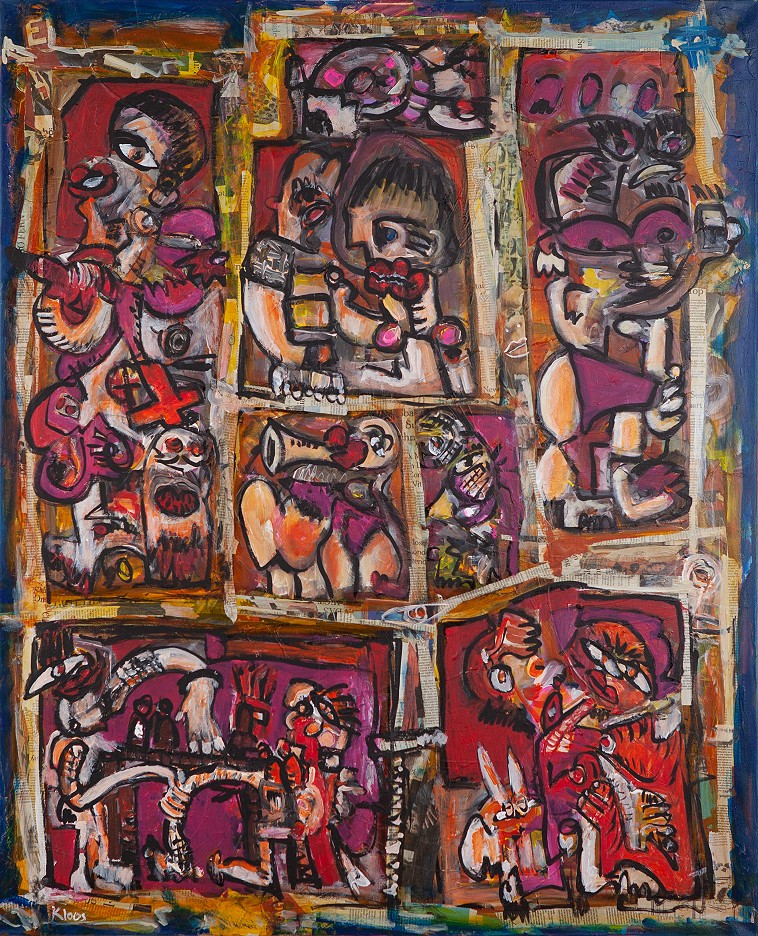 U. G. Kloos' collageartige Malereien und seine plastizierten Figuren zeigen Menschen und menschliche Zusammenhänge. Einen steten Quell der Inspiration nennt Kloos Menschen, „die mit ihren Ideen und Vorstellungen von der Norm und den Erwartungen abweichen“. Auch Geschichten von T. C. Boyle oder andere Künstler inspirieren den Münchner.