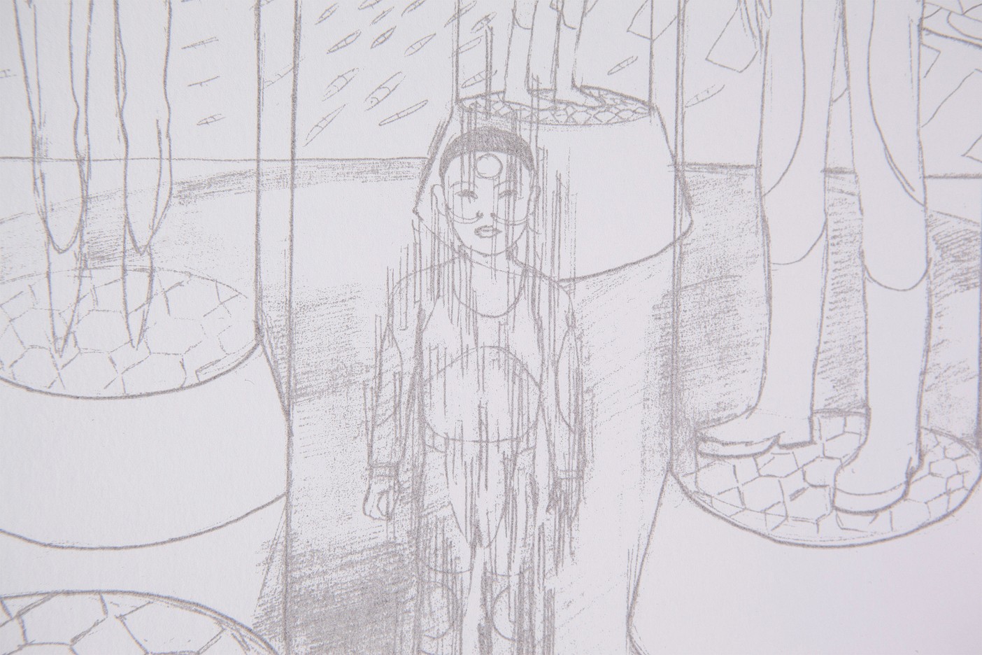 | Material-Text | Siebdruck in Bleistift Zeichnung Optik |
