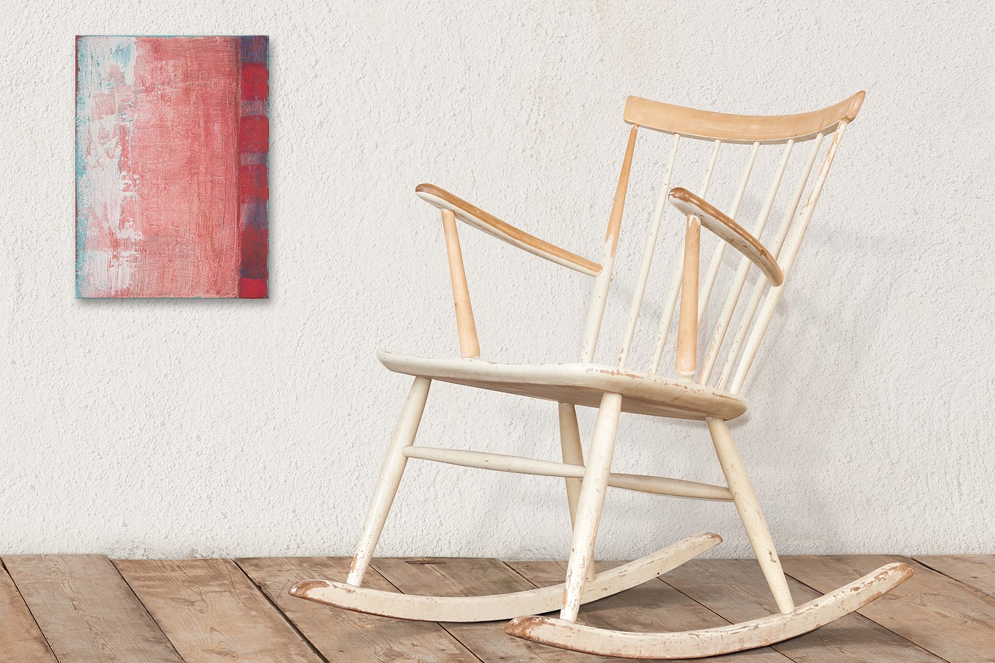 Laura Voglers abstrakte Bilder entstehen in Mischtechnik – und an allen möglichen Orten, denn „da mein Drang zu malen oft sehr groß ist, kann ich meine Sachen überall auspacken“, so die Künstlerin. Im Interview verrät sie, wie sich ihre Malerei entwickelt hat – und ob sie Lieblingsfarben hat.