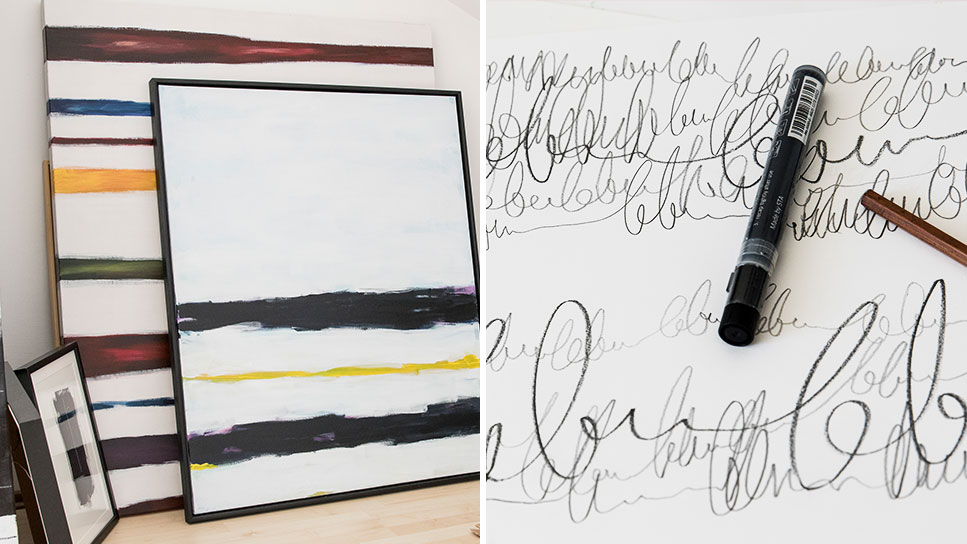 Du wählst in deiner Kunst den Weg der Reduktion, zum Beispiel auf Schrift, auf Schwarz, auf Streifen. Bitte erzähle uns von den Vorteilen der Reduktion. Und wenn du magst, auch, was es mit dir macht, so zu arbeiten.