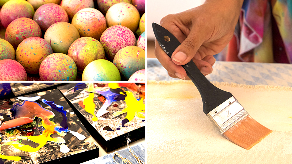 In meinem Atelier, bei guter Musik oder einem tollen Hörbuch und mit Zeit. Mein Atelier ist ein Wohlfühlort für mich. Dort stehen einige fertige Bilder aber auch viele angefangene, die mich anschauen und zum Weitermalen einladen.