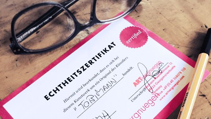 Jedes Kunstwerk ist mit einem Echtheitszertifikat ausgezeichnet.